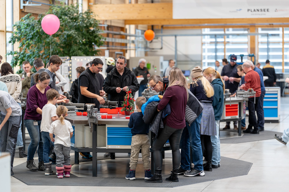 Selbstbewusst und mit sichtbarer Freude führten die Lehrlinge der Plansee Group die Besucherinnen und Besucher am 29. November durch ihr Ausbildungszentrum und ließen sie für einen Tag erleben, was sie selbst dort täglich lernen. Dazu gehören nicht nur klassische Fertigungsprozesse wie Drehen, Fräsen oder Schleifen, sondern auch Sondertechnologien wie Lasergravieren, 3D-Druck oder der Einsatz eines kollaborativen Roboters. Neben der Metalltechnik präsentierten sich auch die Ausbildungsbereiche Werkstoff-, Labor- und Elektrotechnik mit Experimenten und kreativen Bastelaktionen.