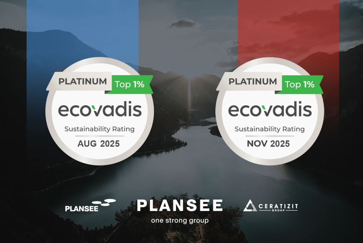 The Plansee Group is reinforcing its leading position in sustainable corporate management: Both of its business areas – CERATIZIT and Plansee HPM – were awarded the Platinum medal by EcoVadis in 2025, the highest recognition from the world-renowned sustainability rating agency.
